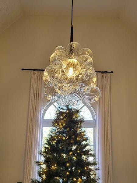 I got this chandelier right before Christmas, and it completely transformed my living room! The glass globes look like little glowing bubbles, almost like ornaments floating in the air. The soft light feels so warm and magical,perfect for the holiday season. I’ve already gotten so many compliments from friends and family. Absolutely love it!