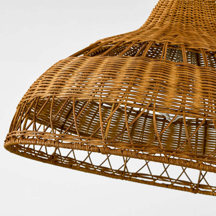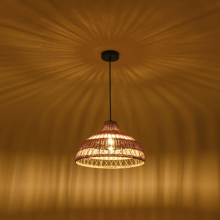 Bring warmth and rustic charm to your home with this 1-light handwoven rattan pendant. the dome-shaped shade is crafted from natural brown rattan in an airy open-weave pattern that gently filters light, casting soft, textured shadows across your space. paired with matte black hardware, this pendant strikes the perfect balance between cozy farmhouse style and modern simplicity. ideal for kitchen islands, reading nooks, or entryways, it creates a relaxed, inviting ambiance while maintaining a clean, minimalist profile.