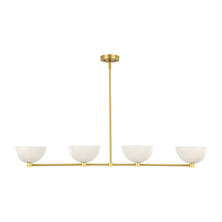 Add a touch of contemporary elegance to your kitchen island or dining area with this sleek 4-light linear pendant. featuring a bowl-shaped iron shade and clean lines, it’s available in two stylish color options. choose brushed gold with a cream-yellow shade for a warm, inviting glow, or matte black with clear glass for a modern, refined vibe. the adjustable rods make it perfect for various ceiling heights, while its minimalist profile fits effortlessly into modern, transitional, or eclectic interiors.