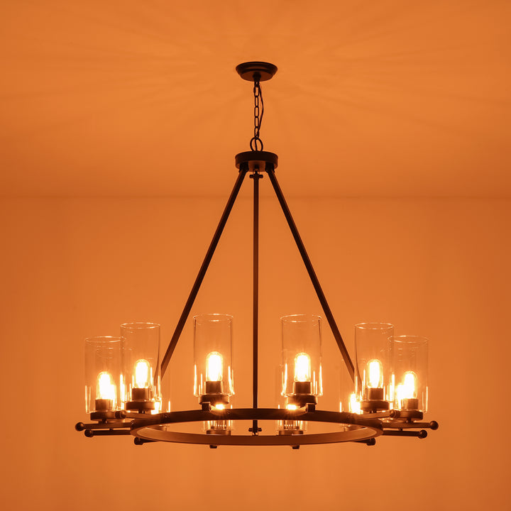 Dresqui 12-Light Dimmable Wagon Wheel Industrial Chandelier (39")
