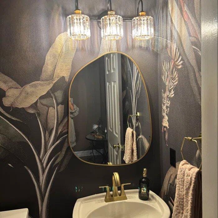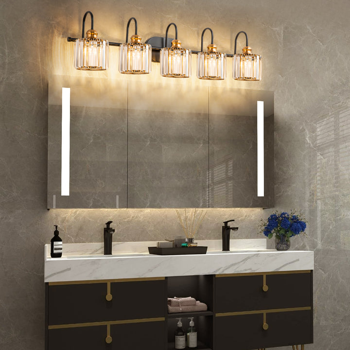The fixture is available in two elegant finishes—matte black with yellow-bronze accents for a more classic statement, or polished chrome for a sleek transitional look. whether mounted above a vanity mirror or on either side, this ETL-certified sconce elevates your daily routine with atmosphere and elegance.