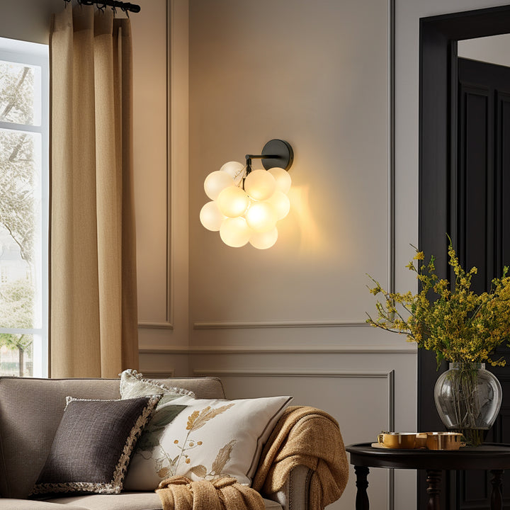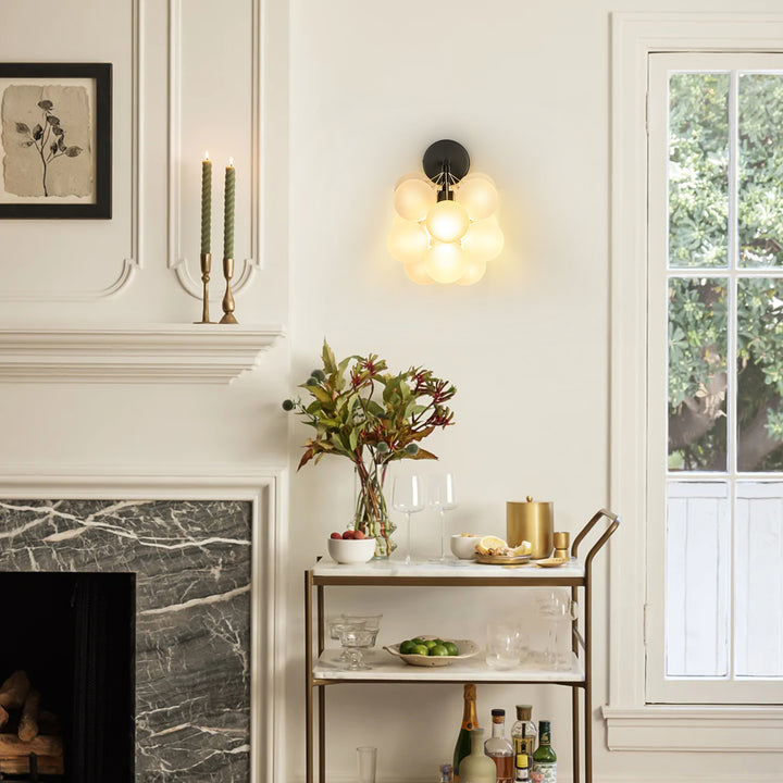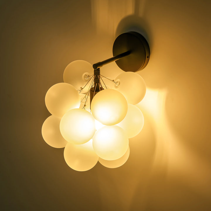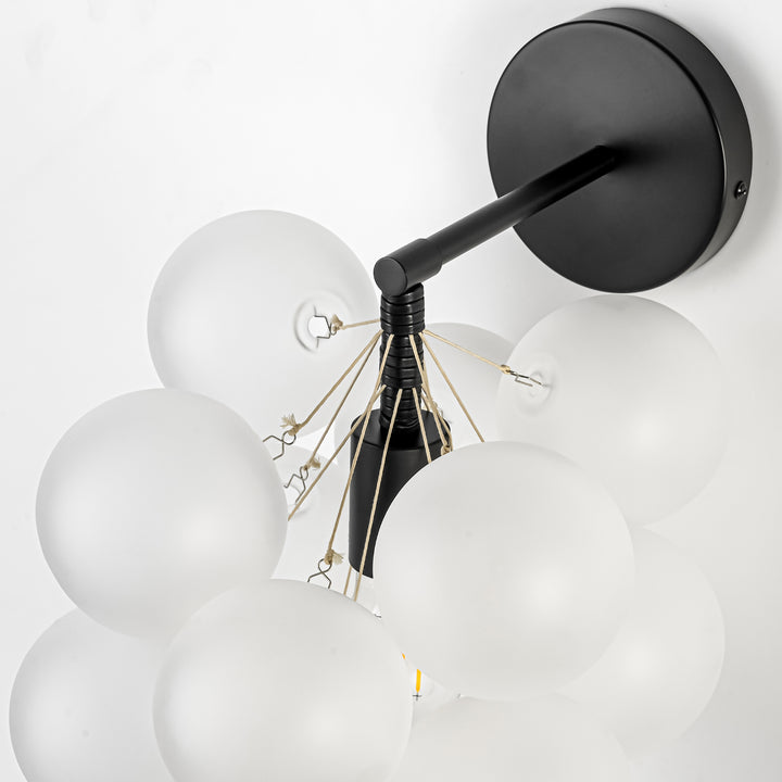 Add a playful yet refined touch to your home with this 1-light frosted glass globe vanity light. the delicate bubble-inspired shade diffuses light softly, creating a warm and calming atmosphere. paired with a sleek black metal base, this fixture blends effortlessly into contemporary, minimalist, eclectic, or even japandi interiors. whether placed beside a bathroom mirror, along a hallway, or as a bedside accent, it offers both function and style. its sculptural form makes it a conversation piece while maintaining a clean, understated elegance that complements a variety of décor styles.