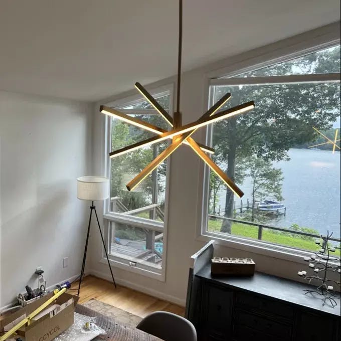Elevate your space with this boldly innovative 4-light modern linear chandelier, where sculptural form meets cutting-edge function. inspired by classic sputnik design elements, this statement piece features four aluminum arms embedded with flexible, dimmable led light strips that radiate in all directions—creating an eye-catching centerpiece in any room.