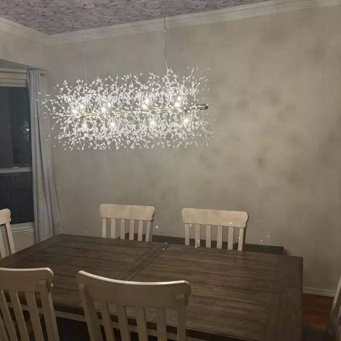 Ideal for dining rooms, living spaces, or entryways, this striking chandelier serves as both a functional light source and a captivating focal point, adding a touch of modern luxury to your home.
