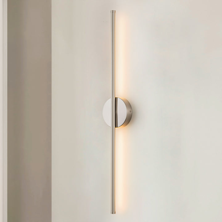 Elevate your interior with the timeless elegance of this sleek cylindrical LED wall sconce, designed to deliver a warm, inviting glow that transforms any room. featuring two perfectly balanced tubes, it casts a soft 3000K light that creates a cozy atmosphere ideal for bedrooms, hallways, or accent walls. with its three elegant finishes, the fixture adds a touch of modern sophistication while maintaining a minimalist charm. its slim width and subtle wall projection make it perfect for narrow spaces or areas where understated charm is desired. equipped with an energy-efficient LED module, this sconce delivers customizable lighting that blends style and function effortlessly.