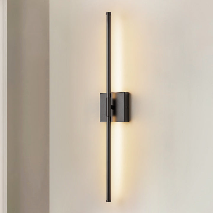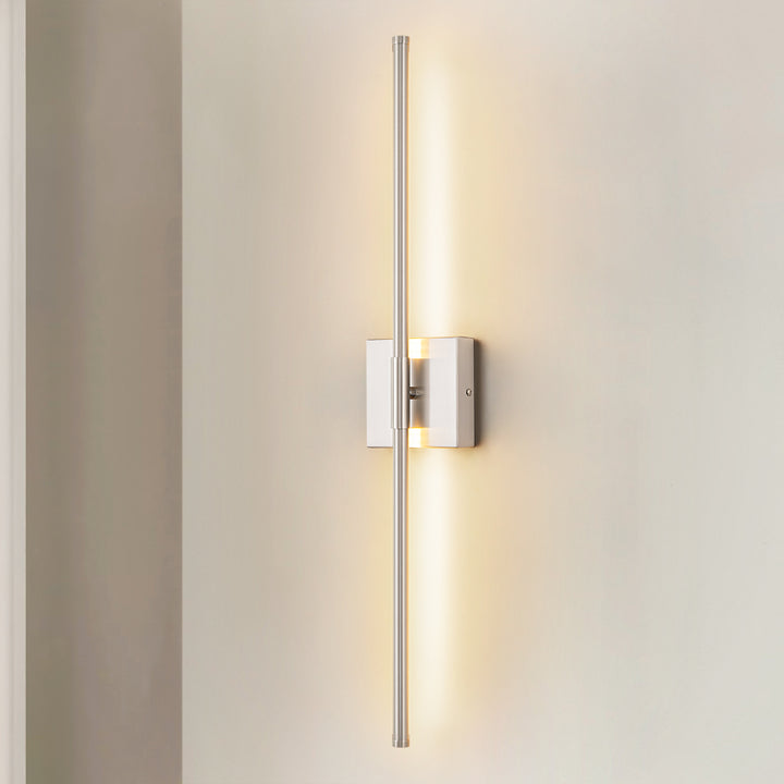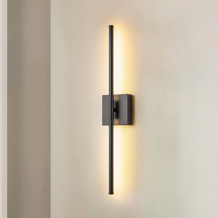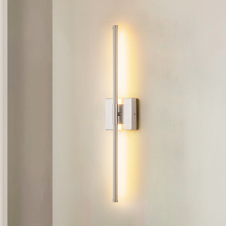 Presenting a modern charm on minimalist lighting, this integrated LED wall sconce features a sleek cylindrical design paired with a clean square canopy. emitting a warm 3000K glow through two balanced tubes, it creates a cozy and inviting ambiance ideal for bedrooms, hallways, or accent walls. with three elegant finishes, the fixture combines contemporary style with subtle sophistication. its 4.72" width and 2.36" projection from the wall provide presence without bulk, perfect for narrow spaces or where discreet yet stylish illumination is desired. equipped with an energy-efficient LED module and compatible with wall switch dimming, this sconce offers both form and function with effortless ease.