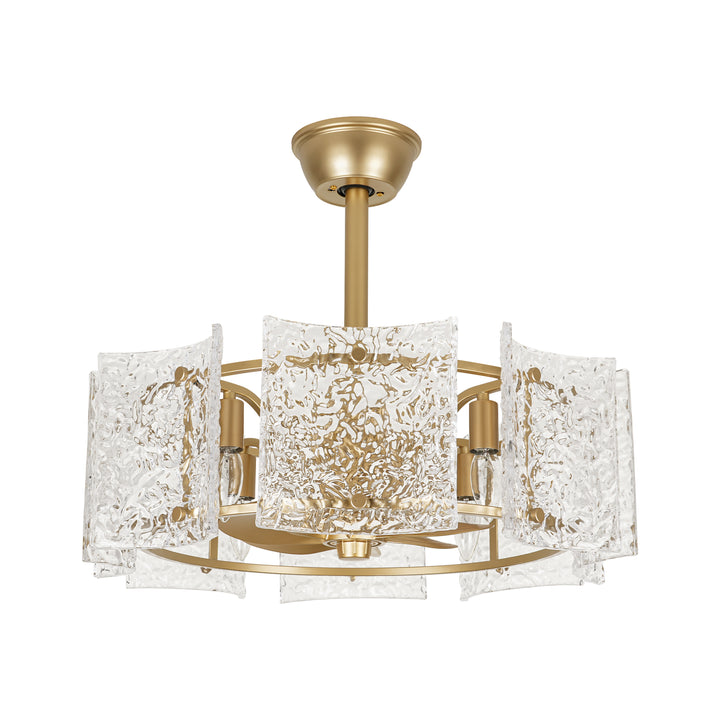 Velroa 4-Light Dimmable Textured Glass Drum Gold Modern Ceiling Fan (24")
