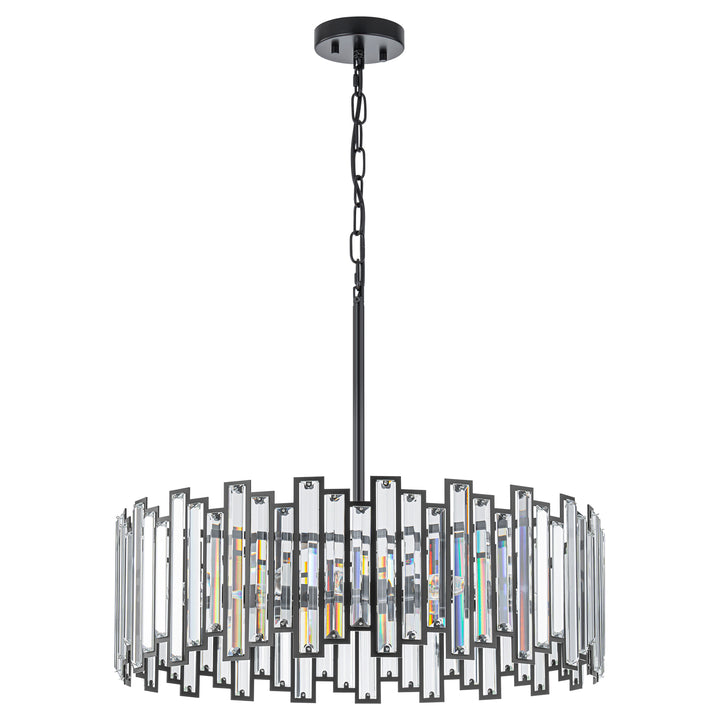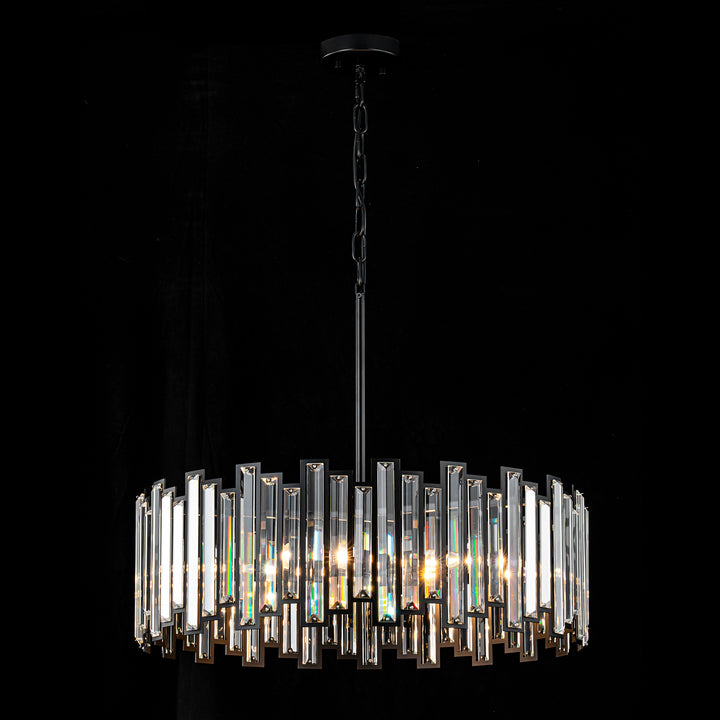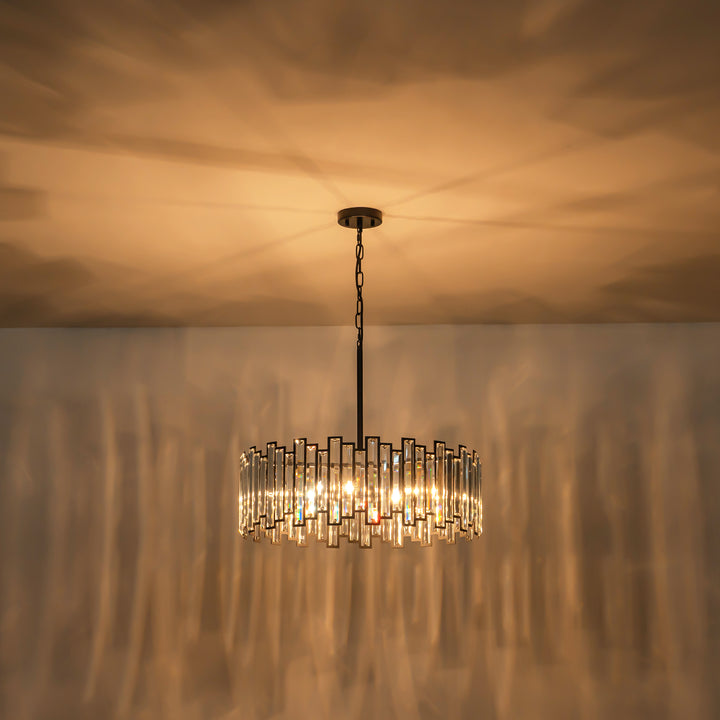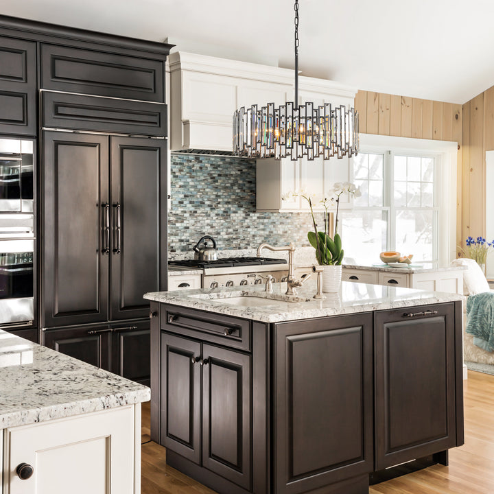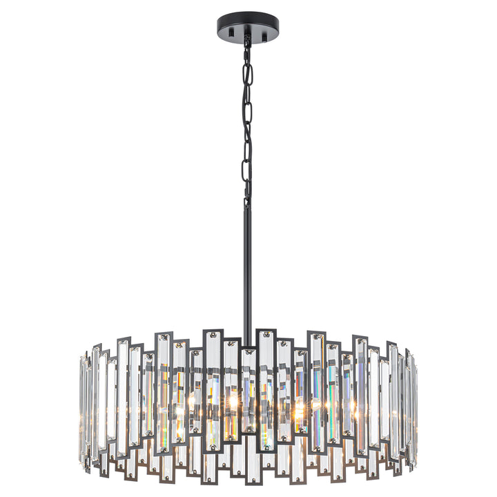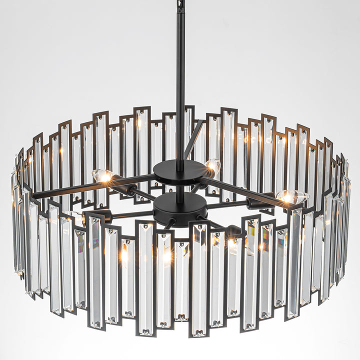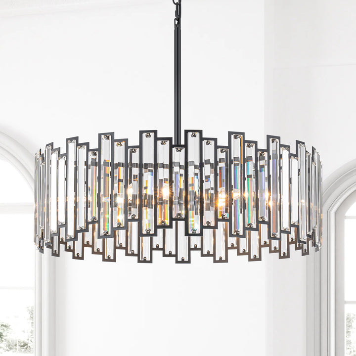 Discover the perfect blend of contemporary and industrial design with this 6-light crystal chandelier. crafted from flawless K9 crystals and finished in sleek black metal, it adds subtle luxury without being overwhelming. versatile enough to complement mid-century modern, farmhouse, or transitional spaces, this elegant fixture brings warmth and sophistication to living rooms, dining areas, or bedrooms. enhance your home with its sparkling charm and inviting glow.