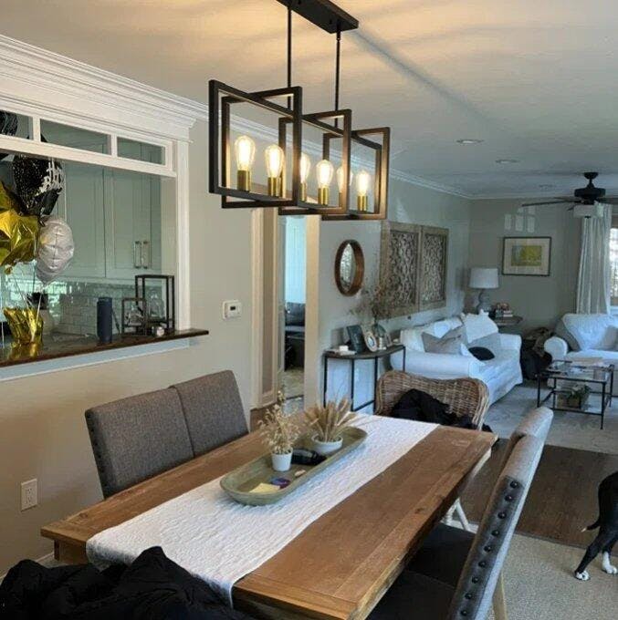 Looks amazing over my kitchen island and gives off just the right amount of light. Love how I can keep it bright for cooking or dim it for a cozy vibe in the evening.