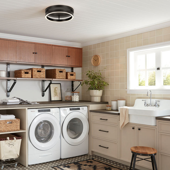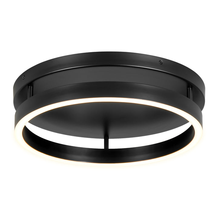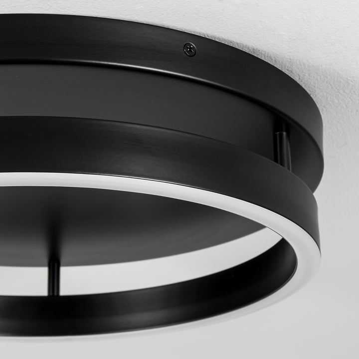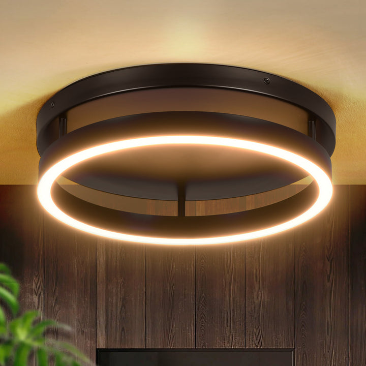 Minimal yet distinctive, this LED flush mount features a bold circular silhouette and clean geometry that adds subtle drama to your ceiling. the matte black metal frame supports a continuous white silicone diffuser ring, casting warm, even light that gently washes downward to illuminate bedrooms, entryways, or hallways.