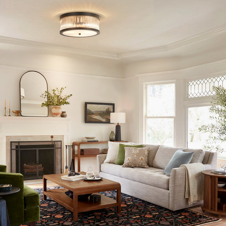 Zylla 3-Light Dimmable Glass Transitional Drum Flush Mount (12")